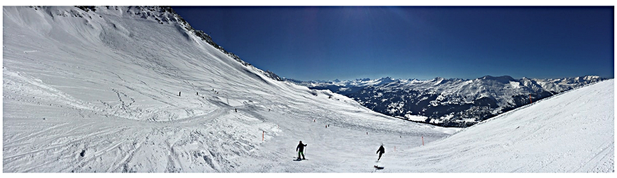 6. Static scenes are best to begin with. If there’s motion in them (people or vehicles) you may get some unwanted blurred or double images when they are stitched together. But it can work if moving objects are far enough apart. (see ski pano above).