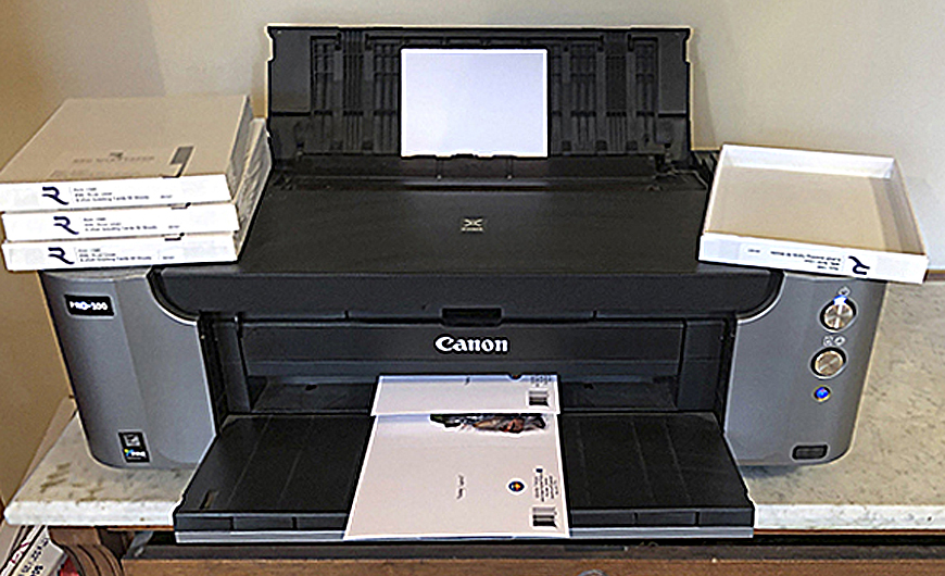 To begin your greeting card venture, the desktop printer you have will be perfectly adequate since cards are small and don't require high resolution images. And you already have a computer and an imaging program. Red River Paper can supply the card sets you need, right down to matching envelopes and they have excellent tutorials at their site that make it easy to get stunning results first time out. They also have an excellent (and inexpensive) selection of card sample kits.