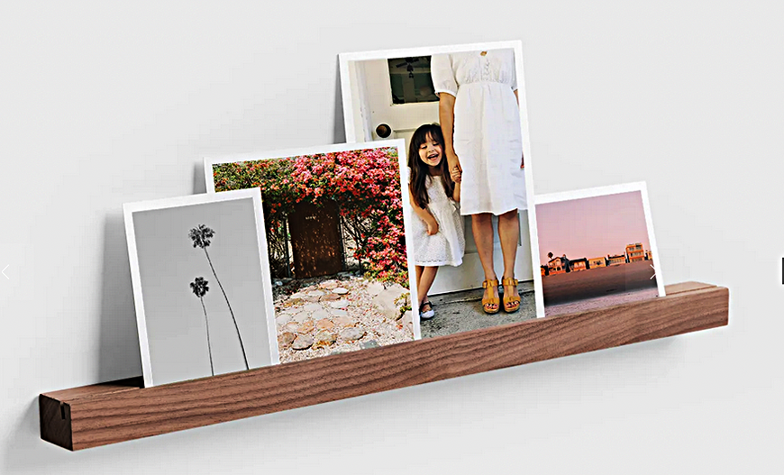 Both the picture ledge and picture stand are made of natural woods and allow you to easily change out images without fuss. The ledge easily mounts to a wall while the block sits alone (or in a grouping), wherever you want it to.