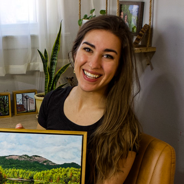 My business is directly tied to my name, and so it's direct reflection of my personality and values. I started creating art when I was a little girl, and my favorite way to create was to paint memories I had from my travels and vacations with my family. I loved giving those paintings as gifts to those I shared the memories with. My art reflects my love of adventure, nature, and creating memories with the people I love.
