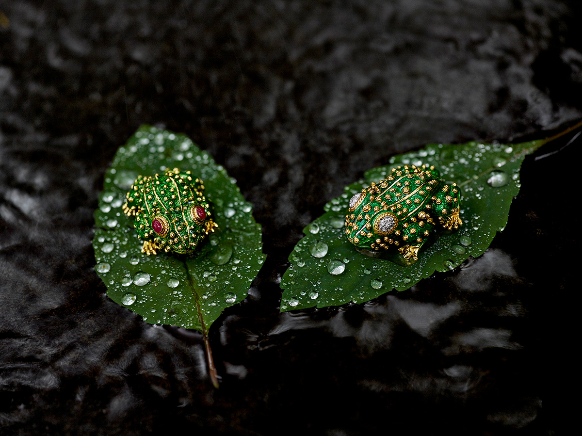Kalina's lens isn't just for the birds — his versatile portfolio sparkles with commissions from big brands. To capture the stunning jewelry of David Webb, Noah took a “Walk in the Woods,†the title of his series featuring blingy trinkets sparkling against a lush green forest. And in the final photo below, we see a gallery shot from his 2021 show “The River.â€