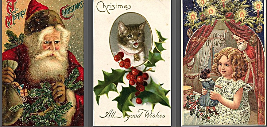 Old-time images from Christmas (and other) holiday cards that circulated during the late 1800s and later have been digitized and can be used free of charge to give your own holiday cards some nostalgic flavor.