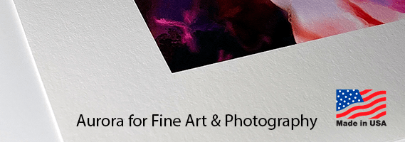 Aurora White is a 100% cotton fiber, semi-smooth (hot press) fine art and photography paper. Aurora White features a brighter white shade for crisp color tones, semi-smooth surface, an acid-free base stock and coating. Made in the USA.