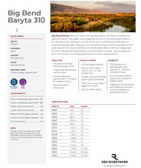 Big Bend Baryta's whiteness comes from a special barium sulfate variant called blanc-fixe, which means permanent white. This material is in the coating. It is inert and lends stability to the paper's whiteness over time. The coating and base materials are free of acid, lignin, and fluorescent brightening agents. Big Bend Baryta 310 gives you all you need for true exhibition quality photographic prints.