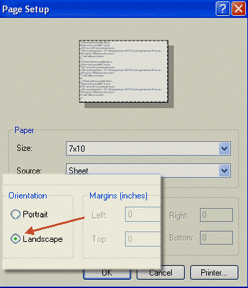 The Page Setup dialog box will appear. Click the Printer button at bottom right. |