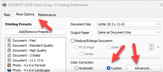 ALSO - The driver will forget your last paper source choice the next time you print. Make it a check list item to set it every time you print. Otherwise, the printer will assume you have paper in Cassette 2 (why, only an engineer deep in a basement at Epson can know) and you'll have to cancel the print job and start over.