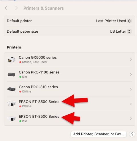 that is usually an indication that you have both the official driver and the AirPrint driver both installed. This is fine, but can be confusing. So we recommend doing the following:
