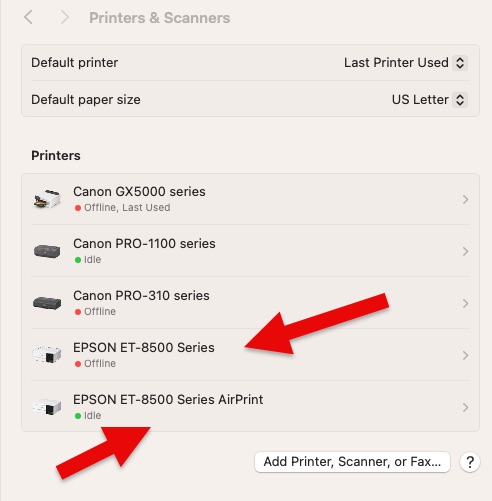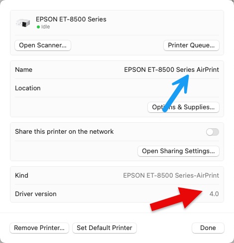 PROBLEM - Apple AirPrint driver in use and not the printer specific driver from Epson, Canon, or HP