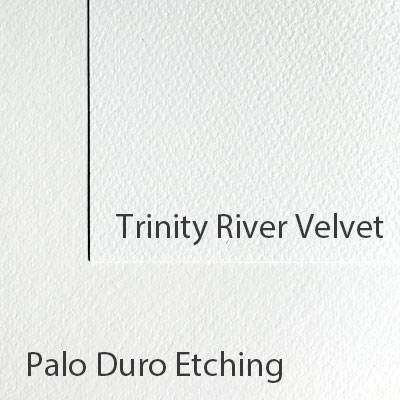The biggest difference is texture. Trinity River Velvet features a deeper, more pronounced cold-press surface, while Palo Duro Etching offers a softer, more traditional fine-art texture. Both are 100% cotton, OBA-free, and museum-grade, but the surface feel creates noticeably different visual and tactile results.