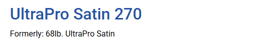 | 68lb. UltraPro Satin | UltraPro Satin 270 |